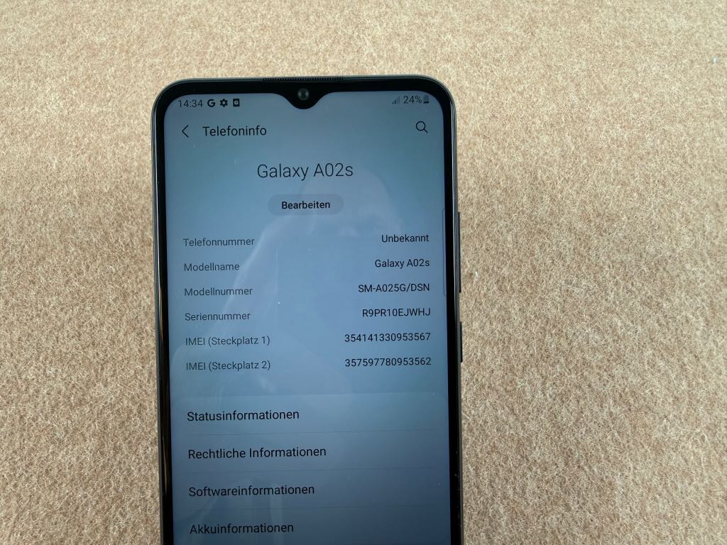 Handy Samsung Galaxy A02s, Das Handy ist optisch in sehr schönem Zustand. Auf der Front ein paar leichte Kratzer. Funktion einwandfrei.